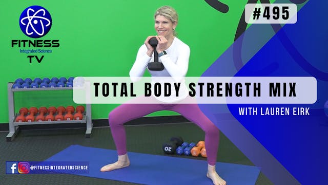 This strength workout is designed to explore the muscular system from head to toe with a superset approach to training. There are five upper and lower body combinations in each group, each performed twice at a moderate pace. Each combination includes a lower body and upper body exercise using d...